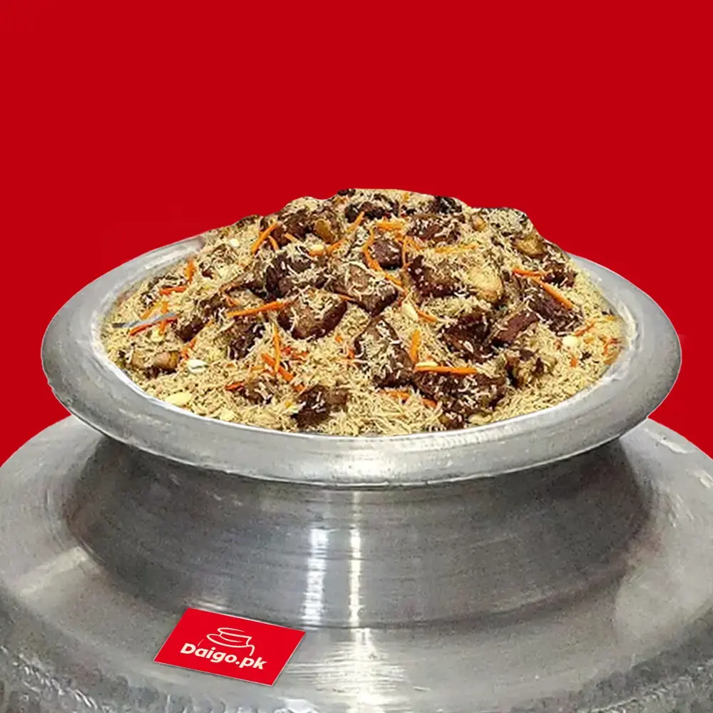Savor the rich flavors of Kabuli Pulao from Daigo—a perfect choice for catering services in Peshawar! Made with fragrant rice, tender meat, and a blend of spices, this traditional daig option pairs beautifully with BBQ and other dishes. Ideal for weddings, family gatherings, and events, our food delivery service ensures fresh and delicious pulao delivered near you. Visit our website for price and booking details, and make your event memorable with Daigo’s catering!
